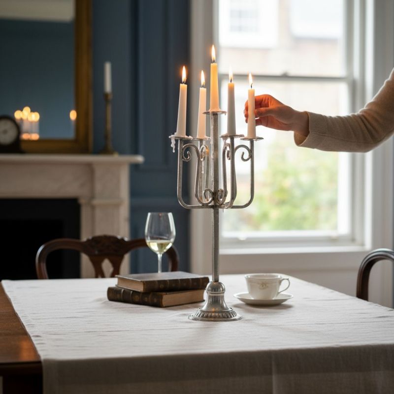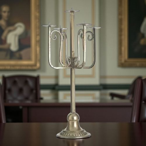 Метален свещник с винтидж дизайн в цвят антично злато.