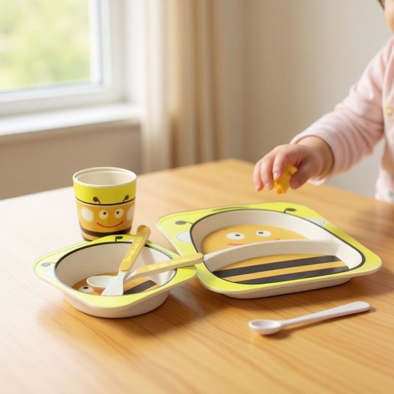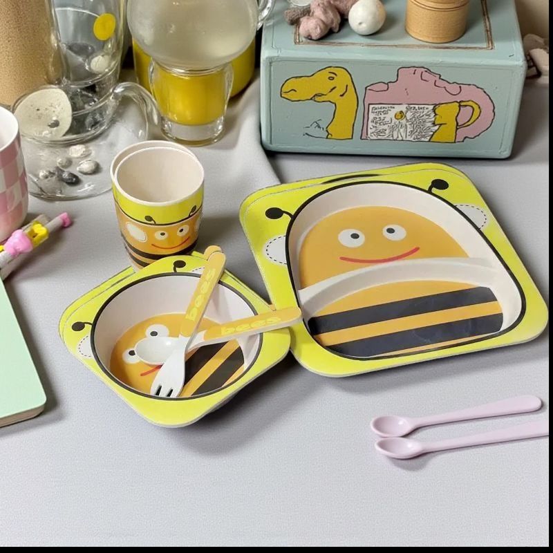 ДЕТСКИ СЕРВИЗ ЗА ХРАНЕНЕ 5 ЧАСТИ ОТ БАМБУК - ЕКО