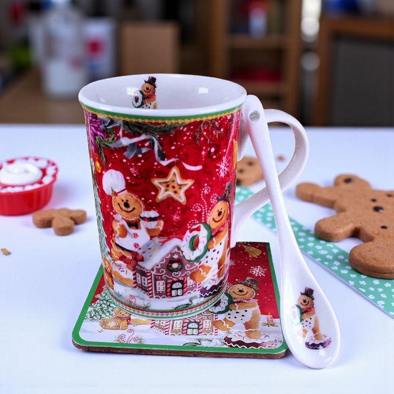 КОЛЕДНА ЧАША С ЛЪЖИЧКА И ПОДЛОЖКА - КАНЕЛЕНА СЛАДОСТ