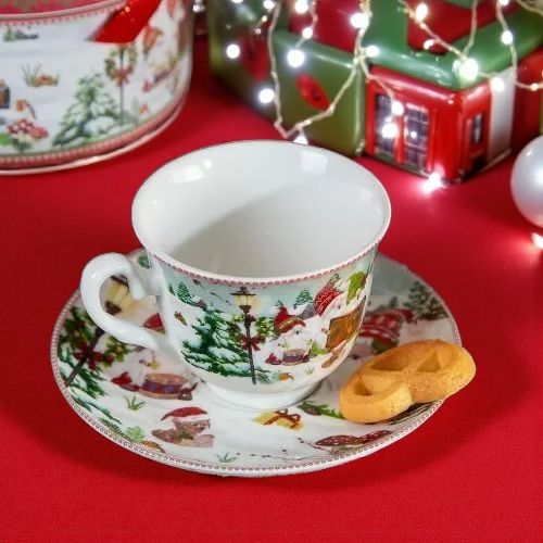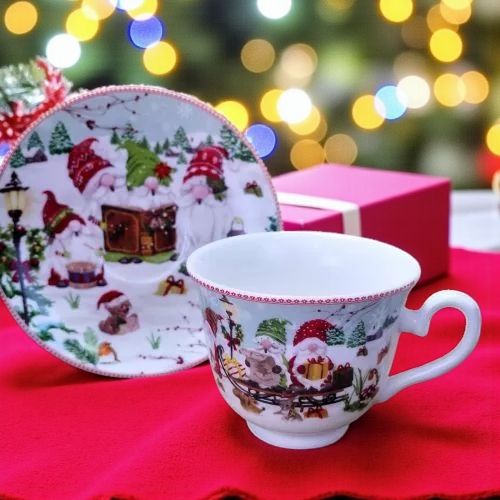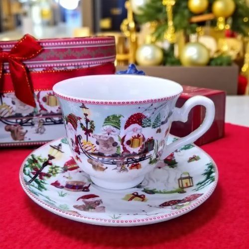 КОЛЕДЕН КОМПЛЕКТ /чаша с чинийка / - ПОМОЩНИЦИТЕ НА ДЯДО КОЛЕДА