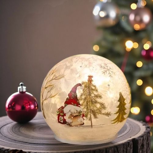 Снежна топка със светлини, изрисувана и декорирана така,че всеки би поискал да усети красотата на зимата.Нека бъде подарък за близък и скъп човек,колега,познат или просто допълнете украсата на дома си.Работи с батерии размер
