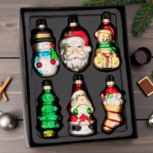 КОМПЛЕКТ СТЪКЛЕНИ ИГРАЧКИ ЗА ЕЛХА - ЦВЕТОВЕ И ФОРМИ