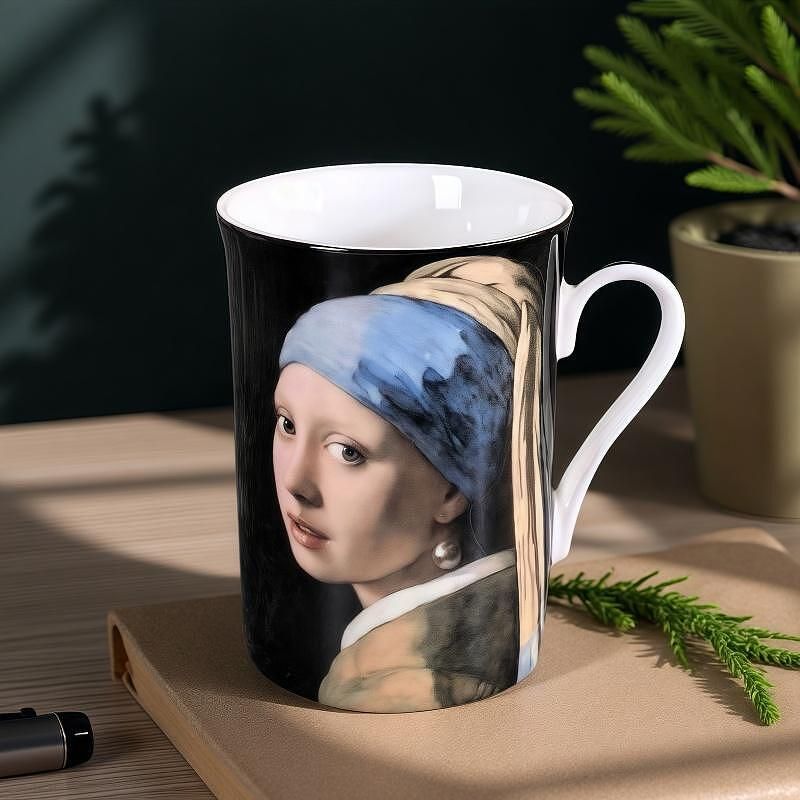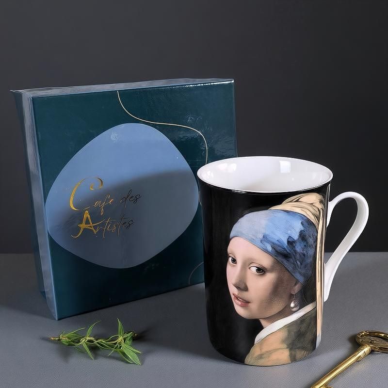 ПОРЦЕЛАНОВА ЧАША В ПОДАРЪЧНА КУТИЯ ПО КАРТИНА НА ВЕРМЕЕР - МОМИЧЕТО С ПЕРЛЕНАТА ОБИЦА