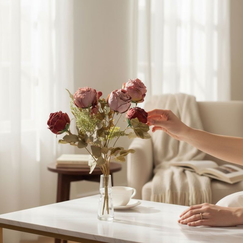 ИЗКУСТВЕН БУКЕТ ОТ РОЗИ 47см - ПРИКАЗКИ ПОД РОЗОВИЯ ХРАСТ