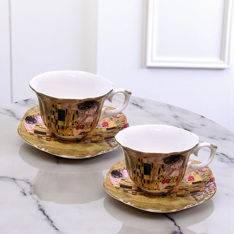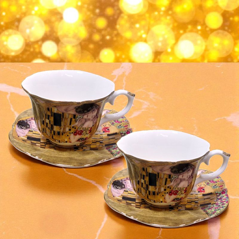 КОМПЛЕКТ ЗА ДВАМА /2 ЧАШИ И 2 ЧИНИЙКИ / - ЦЕЛУВКАТА НА ГУСТАВ КЛИМТ