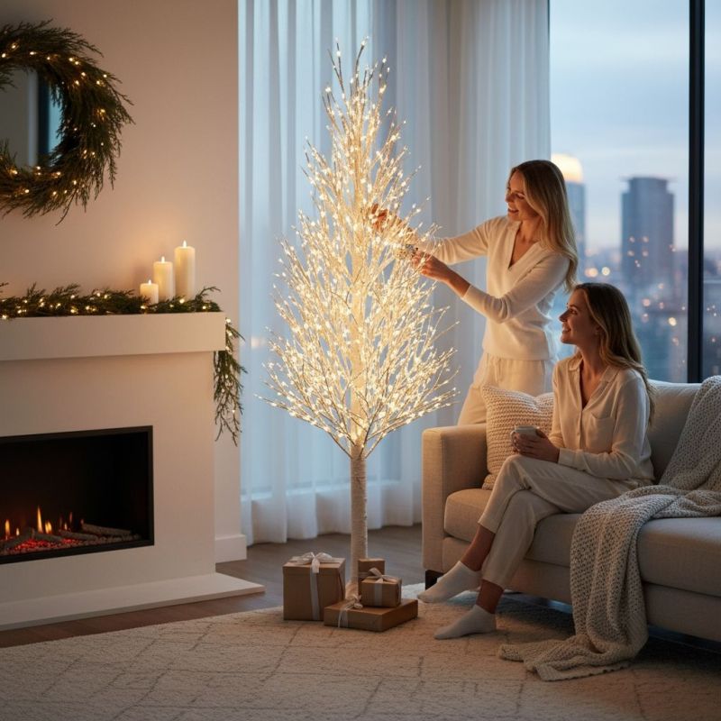 Светещо дърво с визия, която променя пространства и създава стил, който се помни. Белият цвят на клоните и стъблото допринасят за вида на изделието, което създава усещането за вълшебна гора от приказките. Вградените 1100 малки лед-лампички са като скреж по клоните.