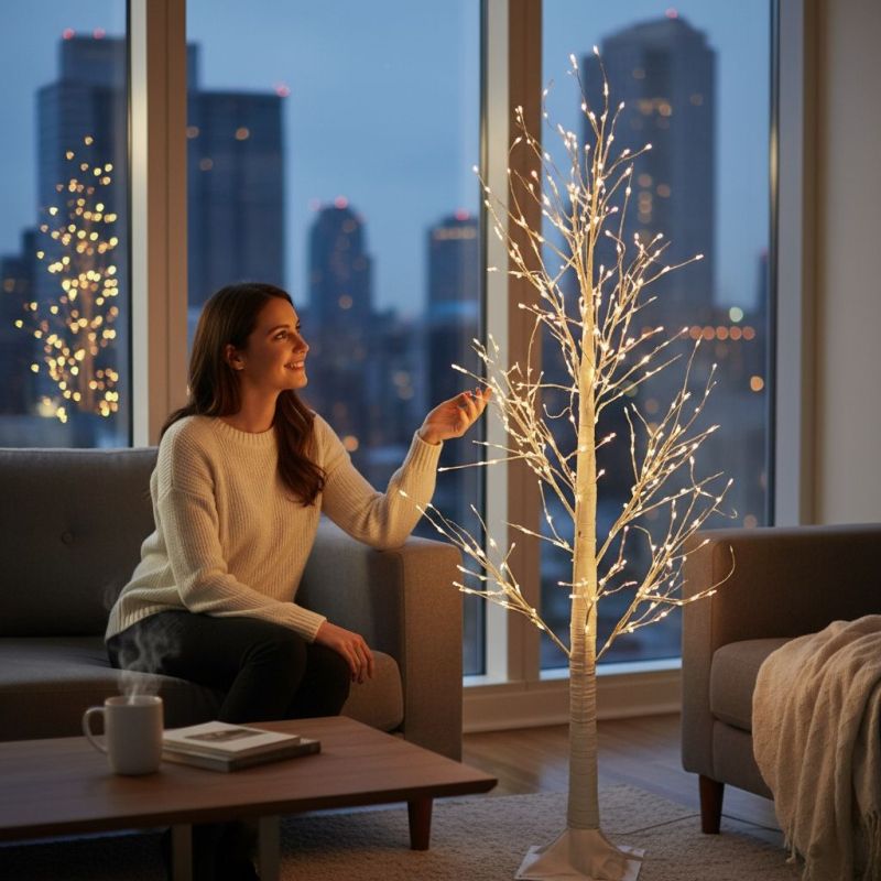 Светещо дърво с визия, която променя пространства и създава стил, който се помни. Белият цвят на клоните и стъблото допринасят за вида на изделието, което създава усещането за вълшебна гора от приказките. Вградените малки лед-лампички са като скреж по клоните.