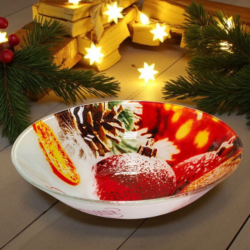 СТЪКЛЕНА КОЛЕДНА КУПА 24см - ЗАСКРЕЖЕНИ ТОПКИ В СНЕГА
