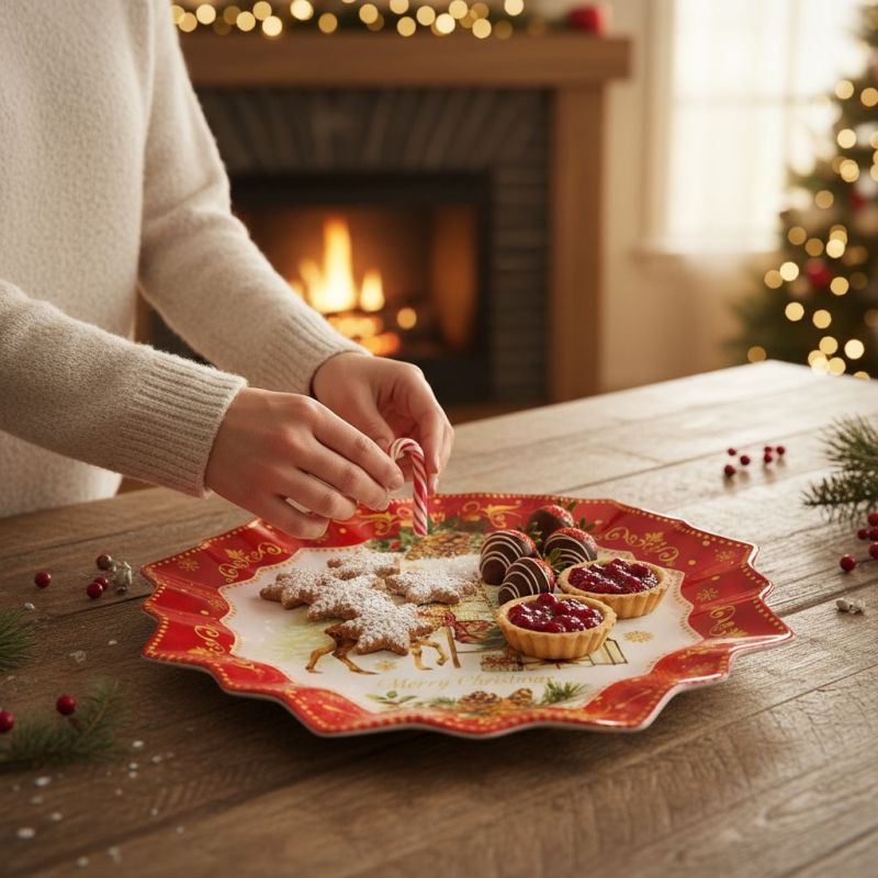 Празник-семейство-трапеза.Това са думите ,които ни вдъхновяват да търсим артикули,които да бъдат част от домовете на нашите клиенти.Новогодишните и коледни празници са част от живота на всички и радостта ,която носят може да бъде още по-голяма в дом изпълнен и с красота.Затова са и нашите предложения от стъклени съдове за трапезата от серия РУДОЛФ В ЧЕРВЕНА ПРЕМЯНА, които пленяват с различни приказни дизайни. Тази чиния напълнена с любимите лакомства или ястия, може да направи празника още по-уютен.