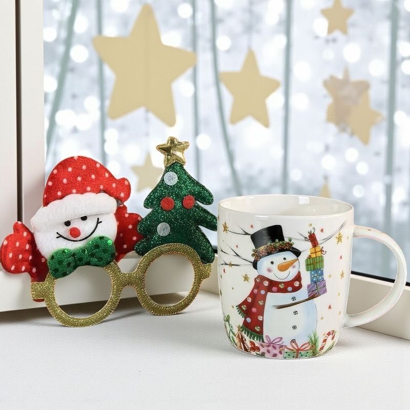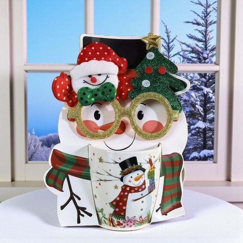 КОЛЕДНА ЧАША С ОПАКОВКА И ПОДАРЪК - ВЕСЕЛИ ОЧИЧКИ