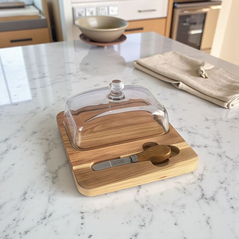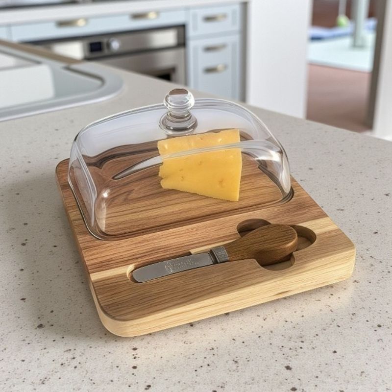 Артикулите от серия ВКУСЪТ НА ДОМА са красиви, но преди всичко практични за употреба. Те са удобни за ежедневието ви, като използването им ще се превърне в ритуал на удоволствието. Всички изделия са направени от качествени материали, а елементите от бамбук подчертават естествените материали при производството им. Този съд може да съхрани маслото, сирената или кашкавалите, които обичате и да запази вкуса им.
