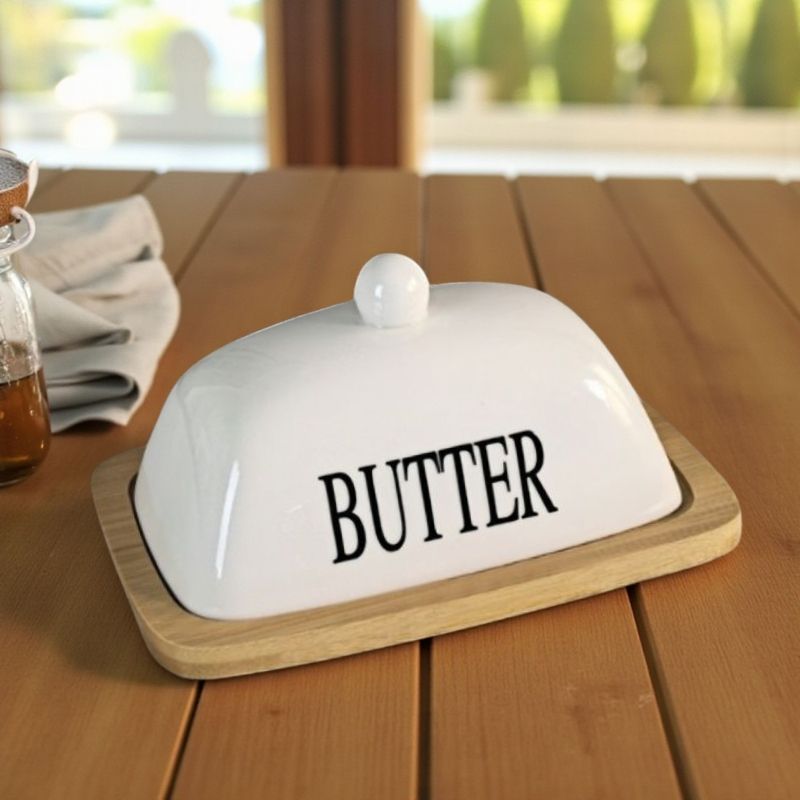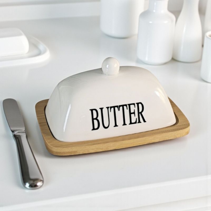 Артикулите от серия ВКУСЪТ НА ДОМА са красиви, но преди всичко практични за употреба. Те са удобни за ежедневието ви, като използването им ще се превърне в ритуал на удоволствието. Всички изделия са направени от качествени материали, а елементите от бамбук подчертават естествените материали при производството им. Този съд може да съхрани маслото, сирената или кашкавалите, които обичате и да запази вкуса им.