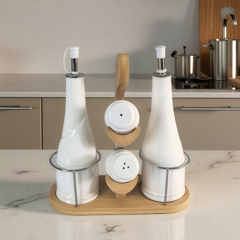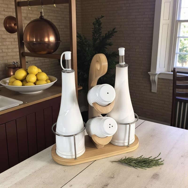 Артикулите от серия ВКУСЪТ НА ДОМА са красиви, но преди всичко практични за употреба. Те са удобни за ежедневието ви, като използването им ще се превърне в ритуал на удоволствието. Всички изделия са направени от качествени материали, а елементите от бамбук подчертават естествените материали при производството им. Този комплект от солнички и олиери е чудесен начин да допълните вкусовете на трапезата и всеки да намери правилната доза от подправки.