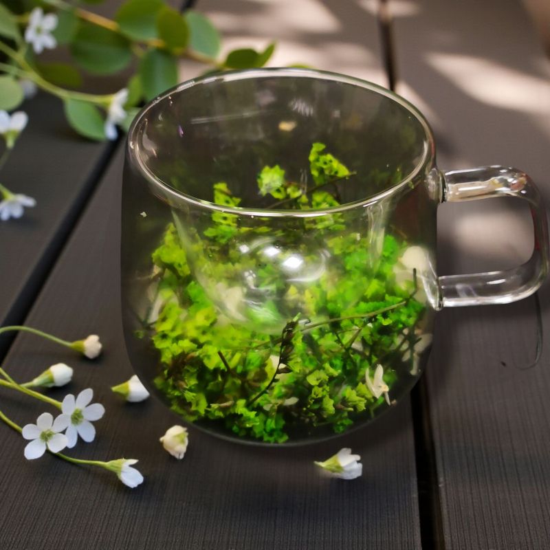 Искате ли да докосвате природата всеки ден?Това е начин да го направите.Тази чаша е съхранила цветчета между стените си и те танцуват всеки път при използването й, като се местят нагоре-надолу, като създават различни форми всеки път.Двойното стъкло е начин напитката да се запази по-дълго с желаната температура, а и да предпази пръстите при допир.Серията от чаши ПРИРОДА В АКВАРИУМ е красив начин да запазите усещането за живота в природата.