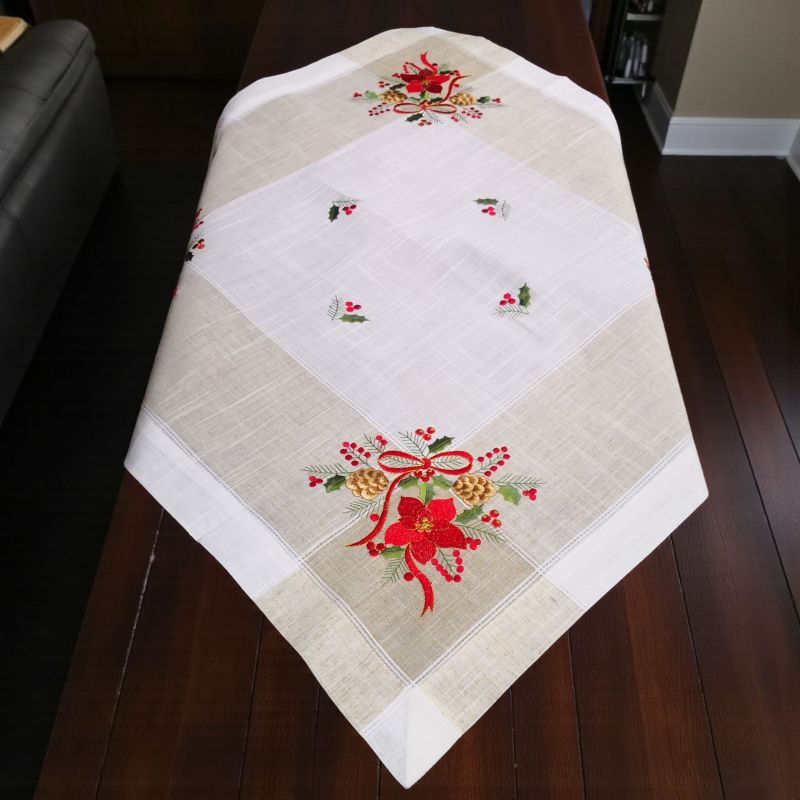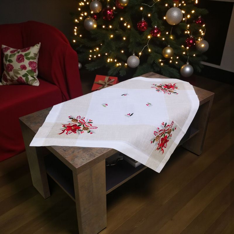 Бродерията присъства в българския дом от столетия.Тя е била израз на домакинята за усета й за красота.В днешното забързано ежедневие тя е лукс но вече достъпен за всеки. Бродираните карета и покривки от серията КОЛЕДНА ЗВЕЗДА И ШИШАРКИ ще направят трапезата ви красива, а празника ще е наистина запомнящ се.Каретата и покривките, ще бъдат отлично допълнение към отрупаната с ястия маса или към масата през деня само с някаква декорация отгоре.А каретата са достатъчно красиви и самостоятелно застлани.