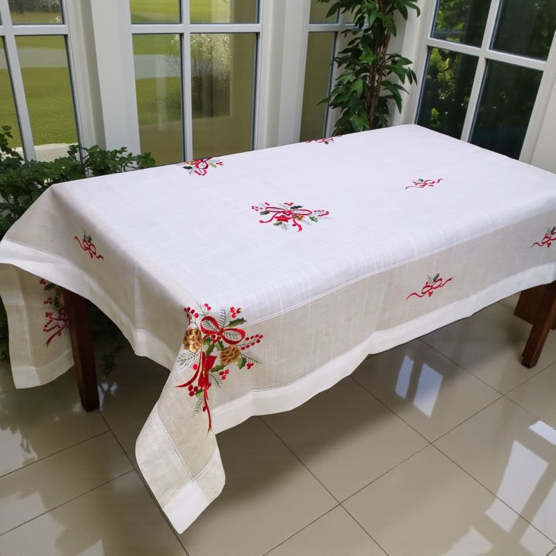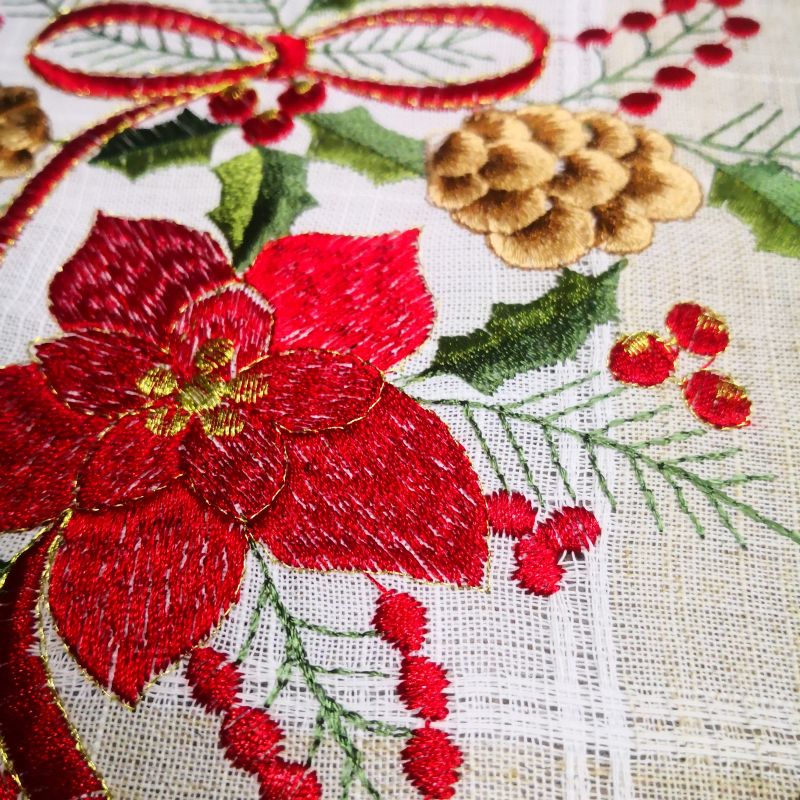 КОЛЕДНА ПОКРИВКА ЗА МАСА С БРОДЕРИЯ 130см*180см - КОЛЕДНА ЗВЕЗДА И ШИШАРКИ