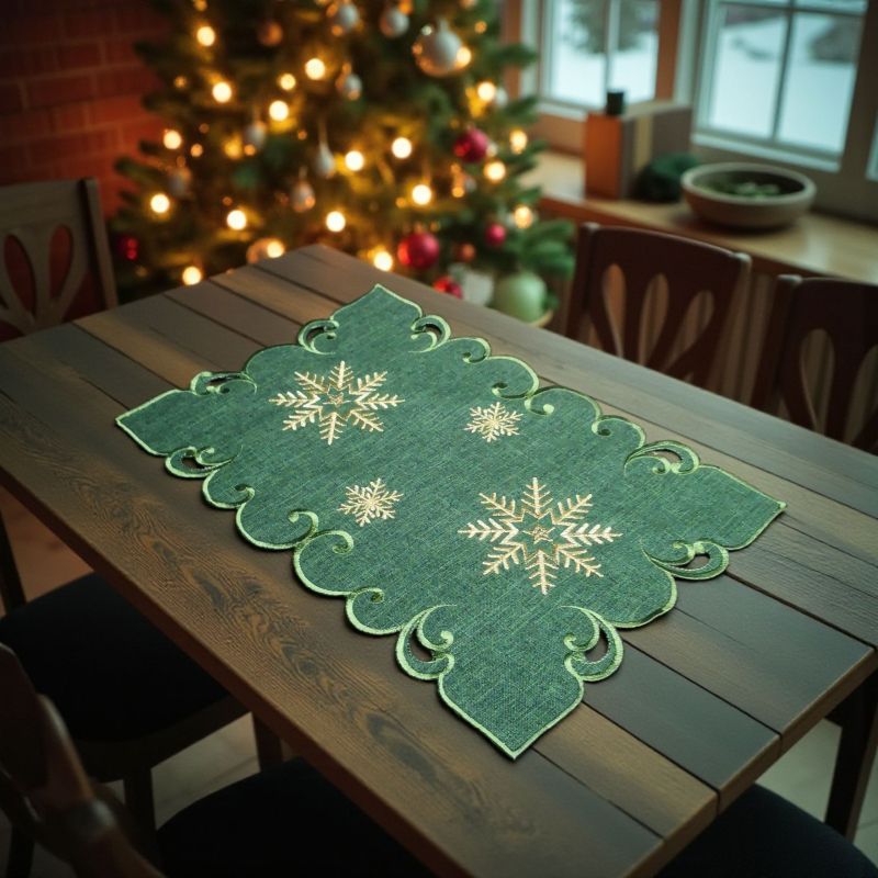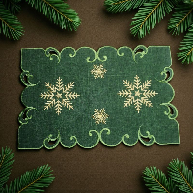 КОЛЕДНО КАРЕ / ПОДЛОЖКА ЗА ХРАНЕНЕ С БРОДЕРИЯ 30см*45см - ЗЛАТНИ СНЕЖИНКИ В ГОРАТА
