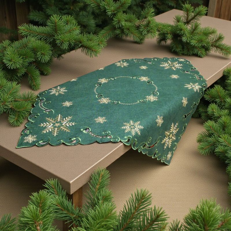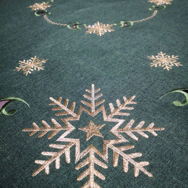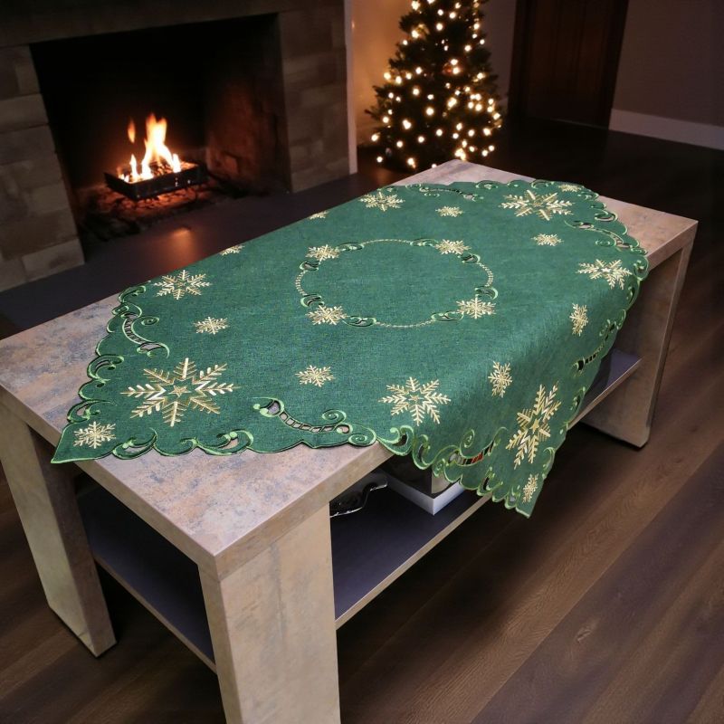 Коледата е свързана с трацидии и обичаи, които я превръщат в празник, който очакваме с нетърпение. Освен елхата друг акцент е и трапезата, която приютява всички и създава усещането за уют и дом. А красивата трапеза е и начин да накараме всеки да се почувства специален. Серията карета и покривки ЗЛАТНИ СНЕЖИНКИ В ГОРАТА в класическите цветове за Коледа могат да бъдат прекрасно допълнение към всяка маса. Изберете подходящите за вас размери и направете комбинации, които отговарят на вашия вкус.на сайта може да откриете различни по цвят и размери коледни покривки и карета. Препоръчва се пране до 30 градуса, без центрофуга.