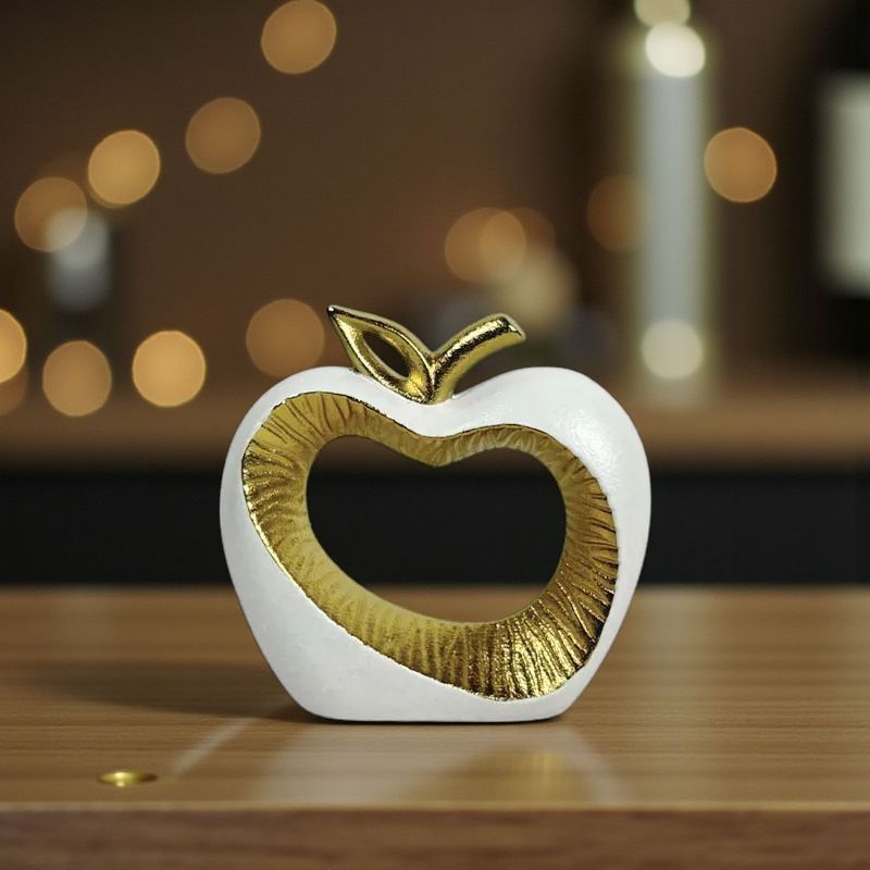 Стилизирана фигура, носеща усещането за райско желание, което променя съдби. Този плод на изкушаващата страст е символ на плодородието и красива препратка към библейската райска градина. Стилното преплитане на класическото бяло и златно придава на изделието онази класа, която винаги се забелязва и е повод за възхищение. Предмет, който се вписва в интериорите и ги променя.