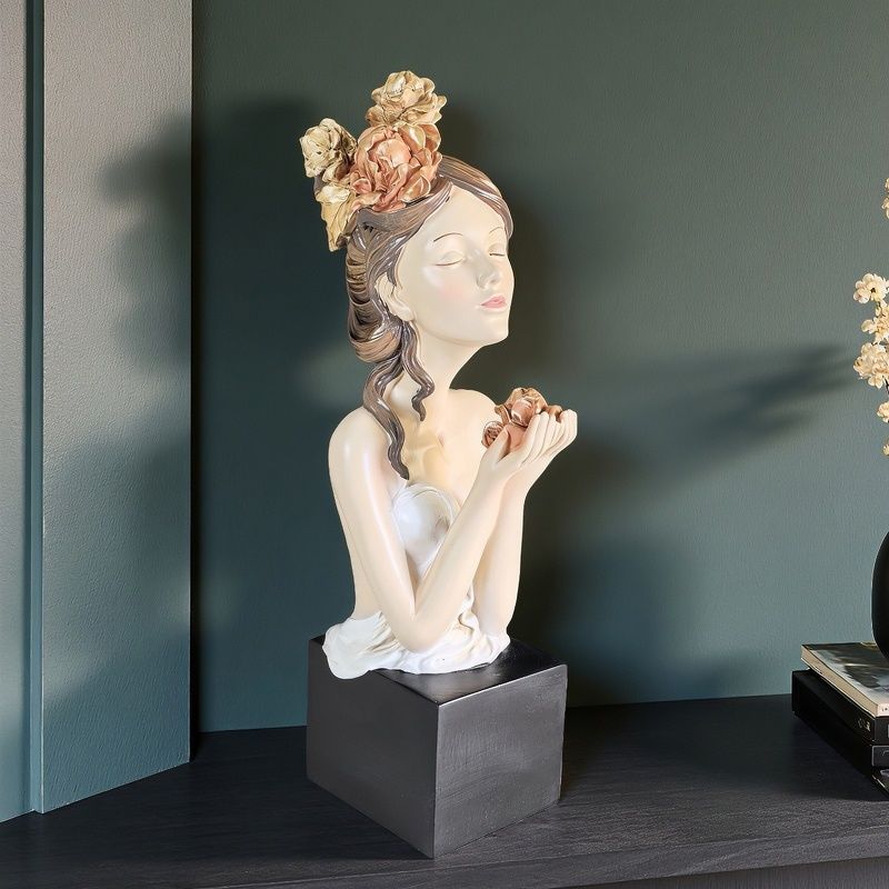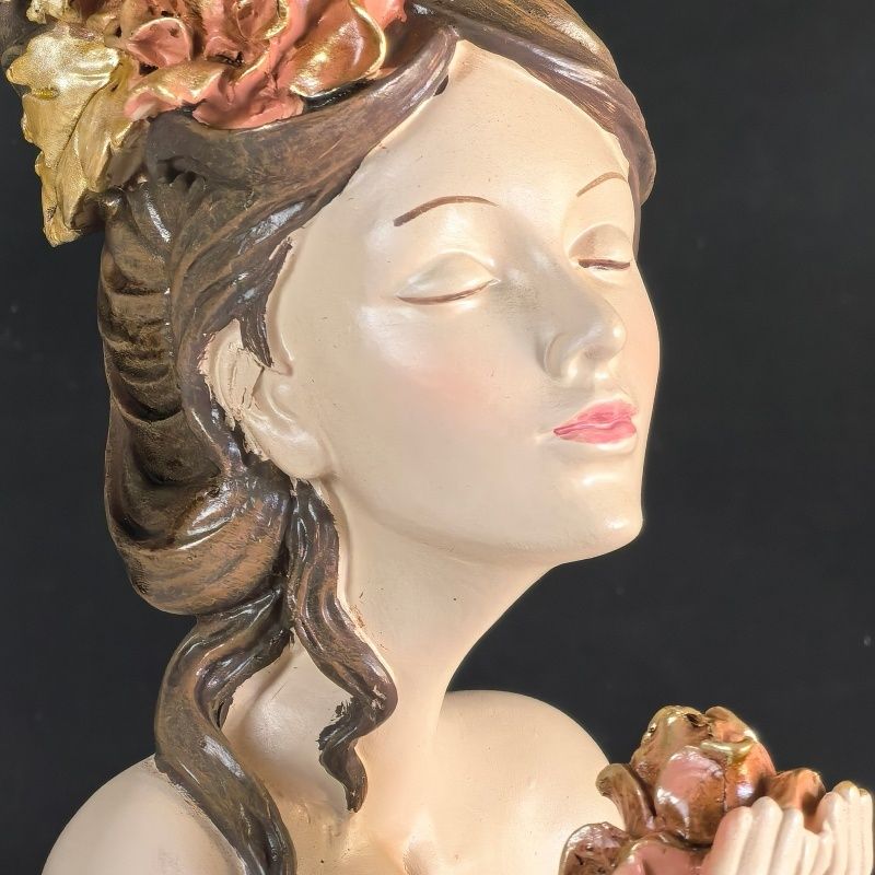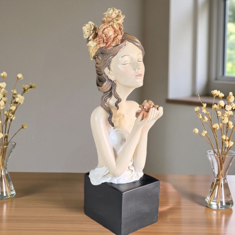 Фигурата КРАЛИЦА НА ЦВЕТЯТА е чудесен начин да допълните атмосферата на дома с още стил и пъстрота, да кажете на любима жена, колко е важна за вас, да накарате мислите да разцъфнат. Артистичният дух, който носи фигурата я превръща в произведение на изкуството и на всяко място, на което бъде поставена ще се превърне в истинска сцена на красотата. Розите, като допълнение само придават завършеност и допълват чара на фигурата.
