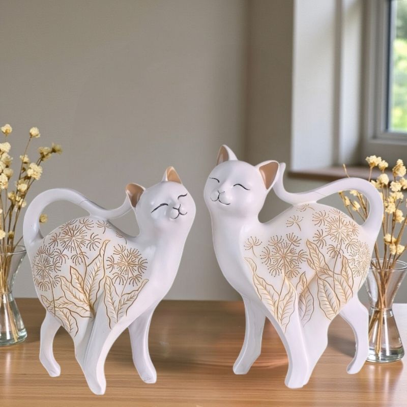Господарка или покровителка на дома , котката винаги е присъствала , като любимо животно в дома на българина. От дълбока древност тя е свързвана с божества с митични сили и способности. Почитана и носеща благословия за радост и плодородие, тази животинка е истинска благословия за всеки дом. Фигурката може да е стилно допълнение към интериора или подарък за нов дом или любим човек. Комплектът се състои от 2 броя различни по размер и форма фигурки.