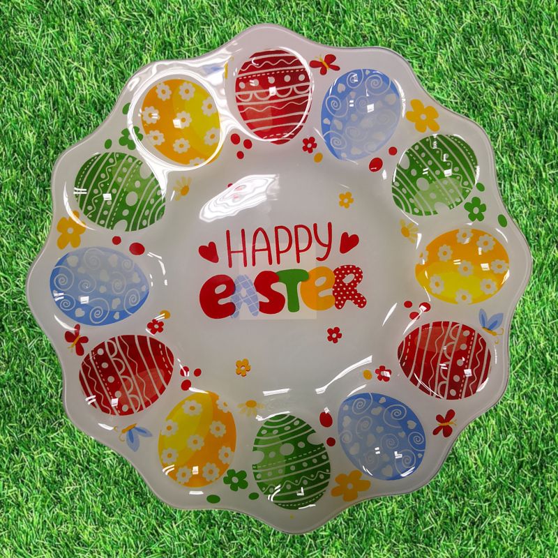 ВЕЛИКДЕНСКА СТЪКЛЕНА ЧИНИЯ С 12 броя ГНЕЗДА ЗА ЯЙЦА - ПЪСТЪР ВЕЛИКДЕН