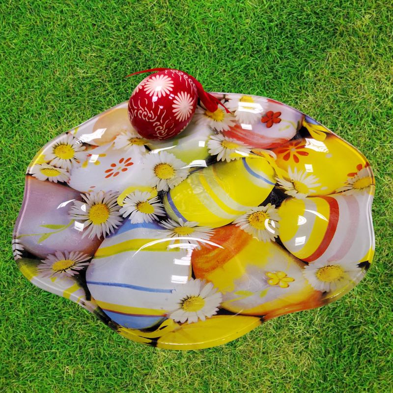 ВЕЛИКДЕНСКА СТЪКЛЕНА ЧИНИЯ С 5 броя ГНЕЗДА ЗА ЯЙЦА - ПЪСТЪР ВЕЛИКДЕН