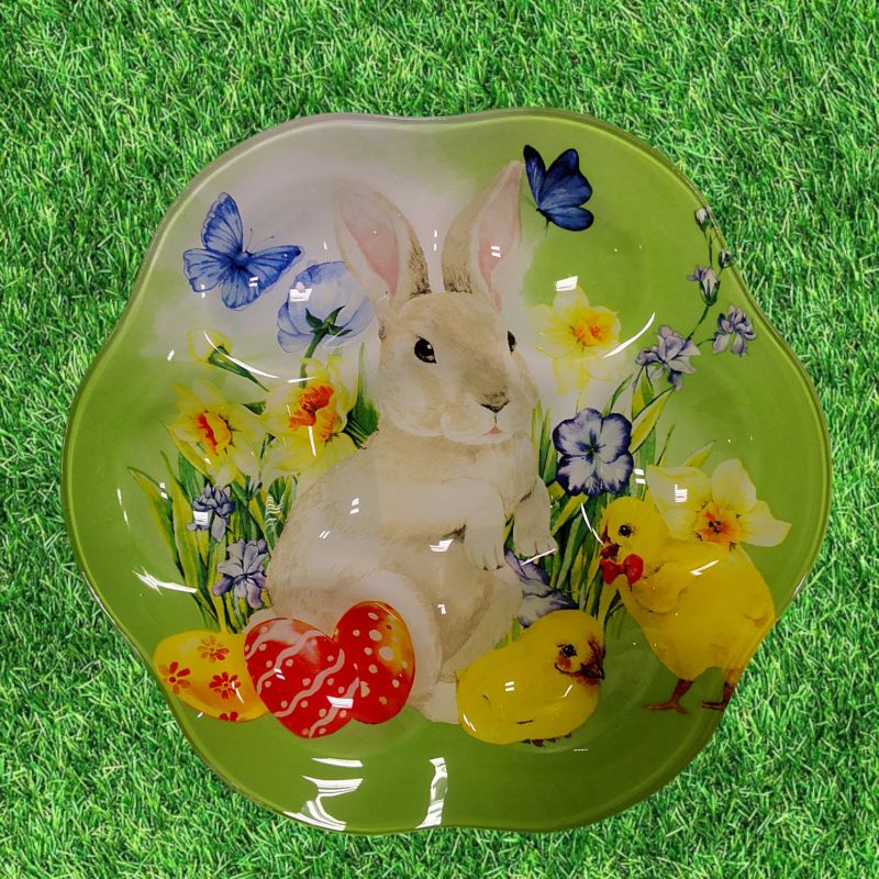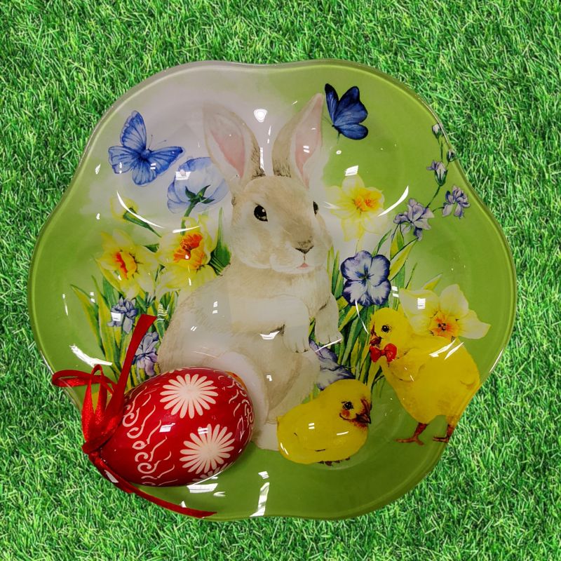 ВЕЛИКДЕНСКА СТЪКЛЕНА ЧИНИЯ С 6 броя ГНЕЗДА ЗА ЯЙЦА - ПЪСТЪР ВЕЛИКДЕН