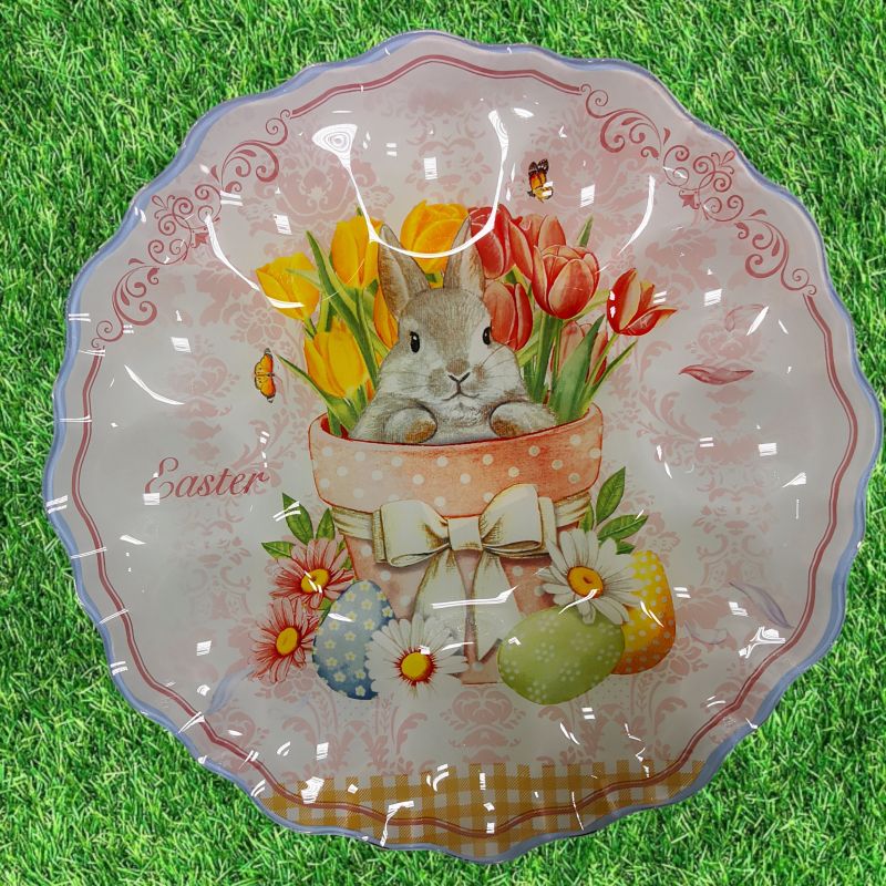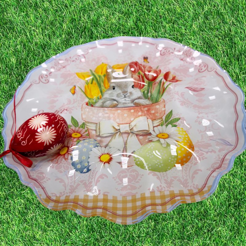ВЕЛИКДЕНСКА СТЪКЛЕНА ЧИНИЯ С 12 броя ГНЕЗДА ЗА ЯЙЦА - ПЪСТЪР ВЕЛИКДЕН