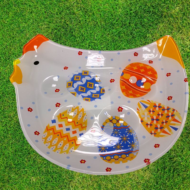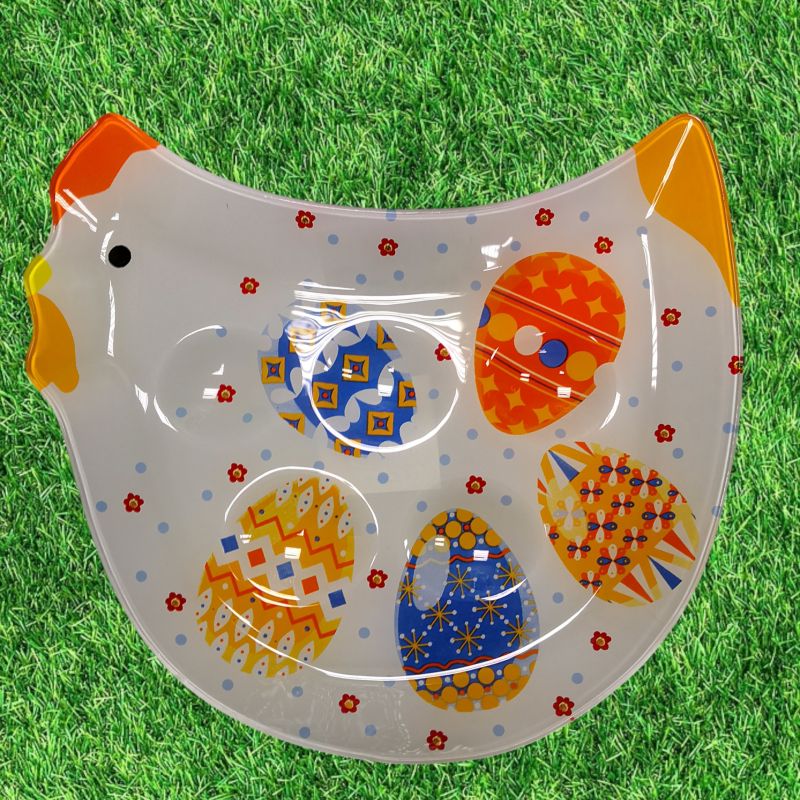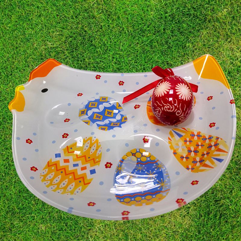 ВЕЛИКДЕНСКА СТЪКЛЕНА ЧИНИЯ КОКОШКА С 5 броя ГНЕЗДА ЗА ЯЙЦА - ПЪСТЪР ВЕЛИКДЕН