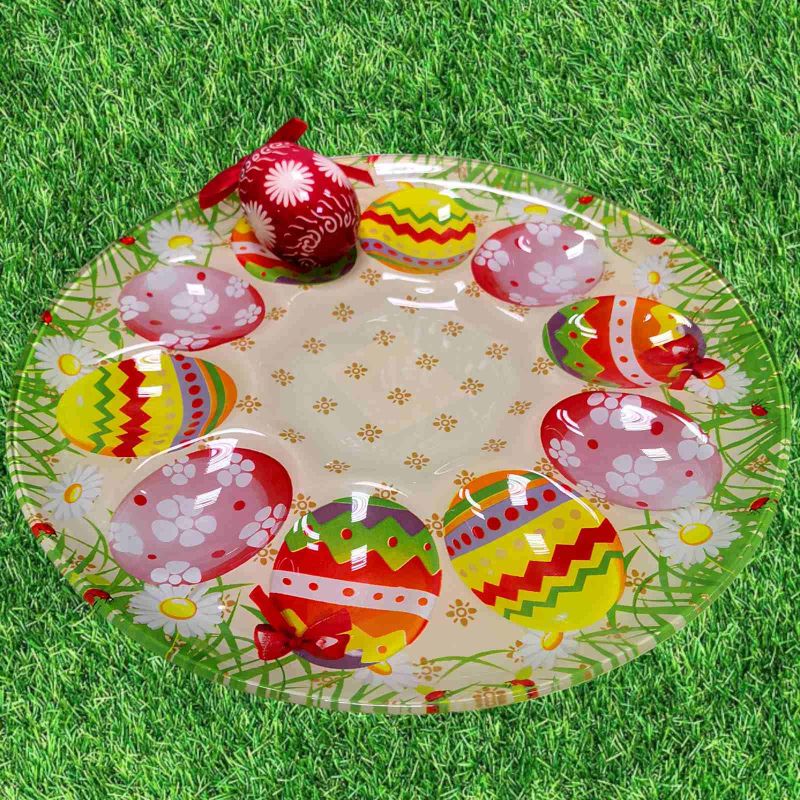 ВЕЛИКДЕНСКА СТЪКЛЕНА ЧИНИЯ С 10броя ГНЕЗДА ЗА ЯЙЦА - ПЪСТЪР ВЕЛИКДЕН