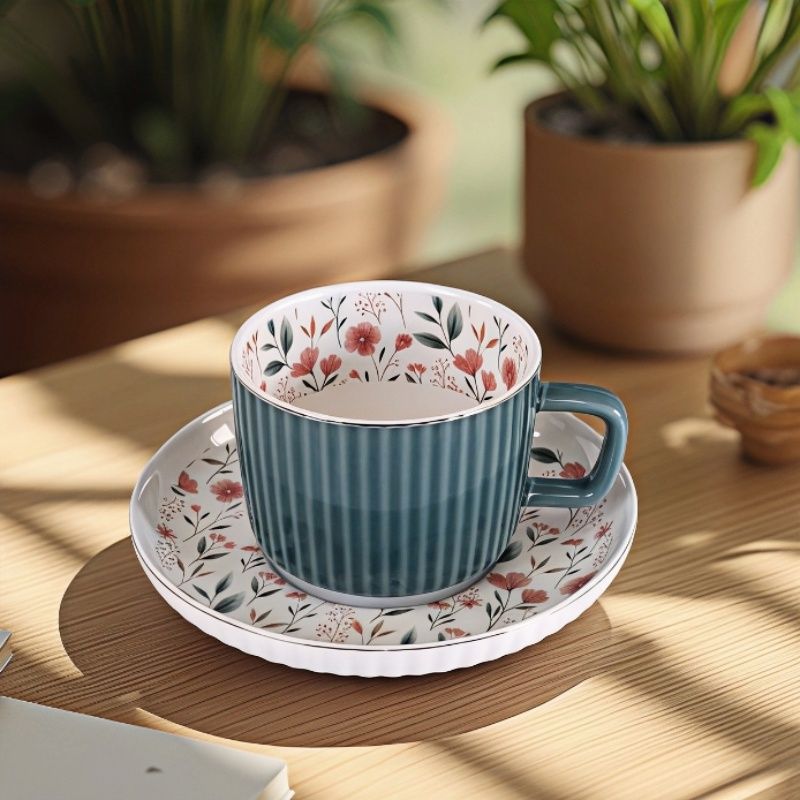 Дизайнът на серия от чаши СЛЪНЧЕВА ГРАДИНА е попил топлината и цветовете от слънцето и ги е съхранил върху повърхността на чашите и чиниите. Тези малки цветчета опасват, като огърлица страните на артикулите и им вдъхват живот, какъвто в природата носи пролетта. Красив и правещ впечатление , този сервиз е начин да се насладите на любимата напитка в хубава компания със стил и усещане за свежест. Комплектът се състои от 2 броя чаши и 2 броя чинии. Чашите са опаковани в подаръчна кутия, което ги прави и подходящи за подарък.