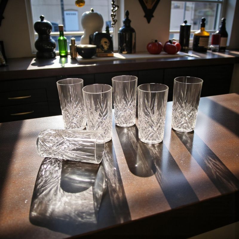 ЧАШИ ЗА ВОДА / БЕЗАЛКОХОЛНО 6 броя - СТЪКЛЕНА РЕШЕТКА