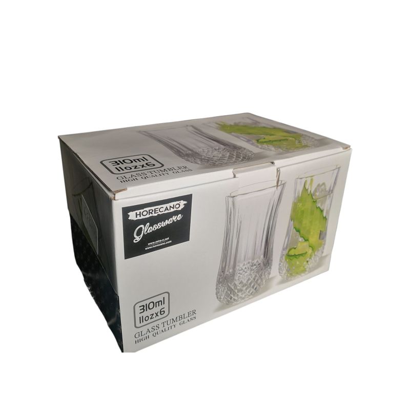 КОМПЛЕКТ ЧАШИ ОТ СТЪКЛО ЗА БЕЗАЛКОХОЛНО / ВОДА 310 мл 6 броя - РЕШЕТКА ОТ СТРАСТ