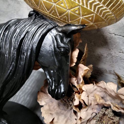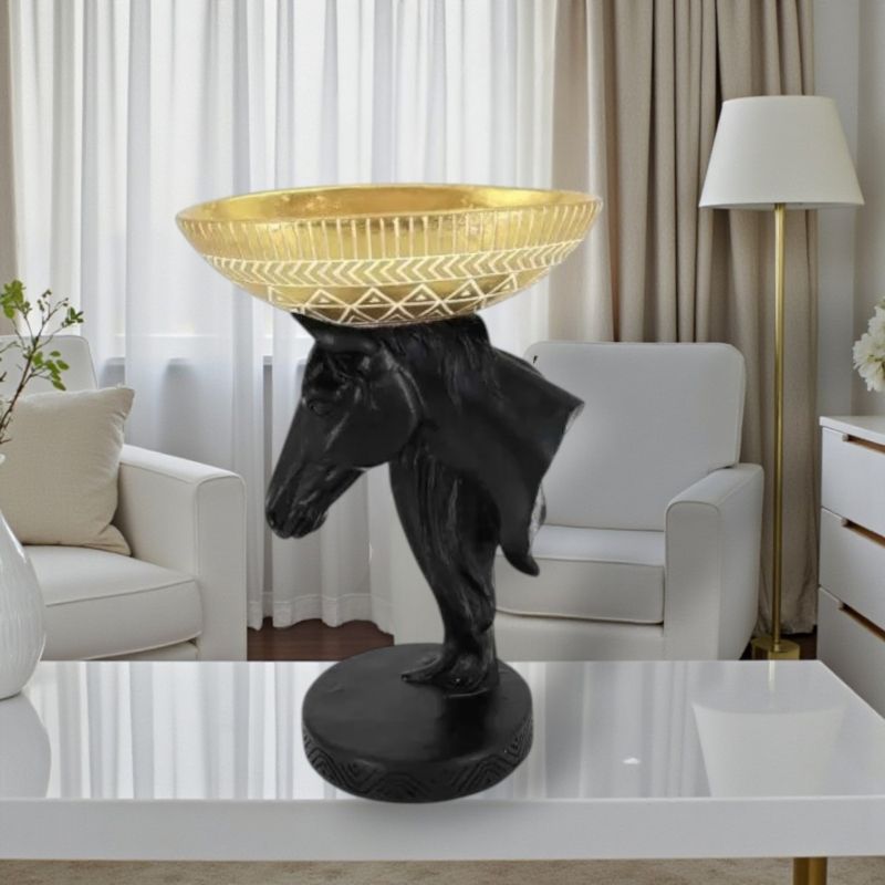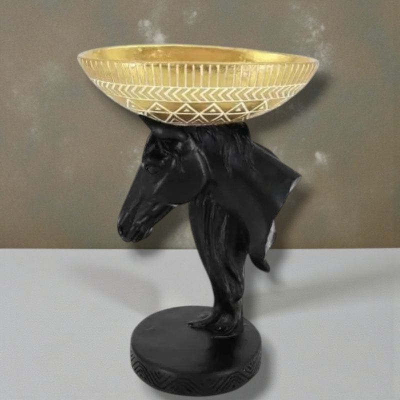 Красива фигура на кон с поднос на главата, който може да се използва за фруктиера, бонбониера или място където да стоят ключовете. Нестандартен и носещ полъха на степите този поднос е начин да избягате от стериотипите и да дадете нов живот на пространства, които търсят нов начин за изява. Един предмет, който не влиза в стандартните визии, но е ценна вещ, която прави впечатление и предизвиква възхищение.