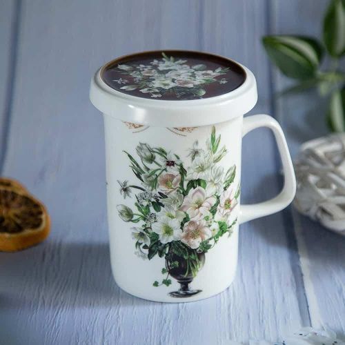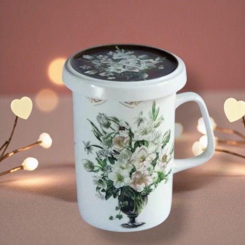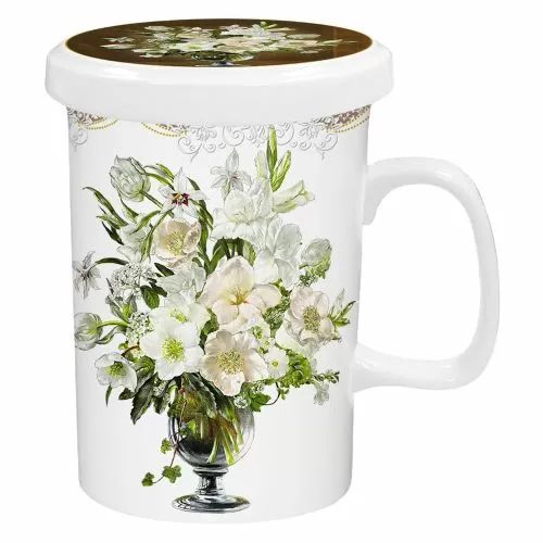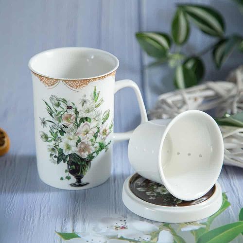 Свеж дизайн, който носи усещането за ретро лукс и се допълва от практичност и стил от формата на чашата. Чашата е възможност да се насладите на любимата напитка и да я приготвите по начин удобен за вас. Допълнена е с порцеланова цедка за чай и капаче, които служат за по-добра запарка на чая, като така ще направят вкуса още по-силен и ароматен. Серията БУКЕТ БЕЛИ ЛИЛИУМИ е допълнена и от други артикули, които може да откриете на сайта ни.