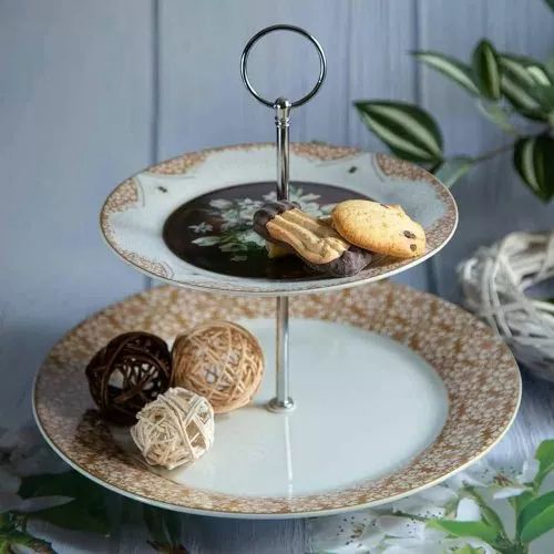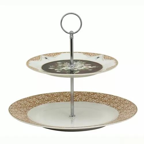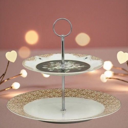 Платото на две нива от серията БУКЕТ ОТ БЕЛИ ЛИЛИУМИ е великолепно допълнение към всяка трапеза със стил. Поднасянето на сладкиши, солени и сладки, както и различни хапки и сандвичи може да има друга визия с този продукт, който може да се впише в интериора на всеки дом.