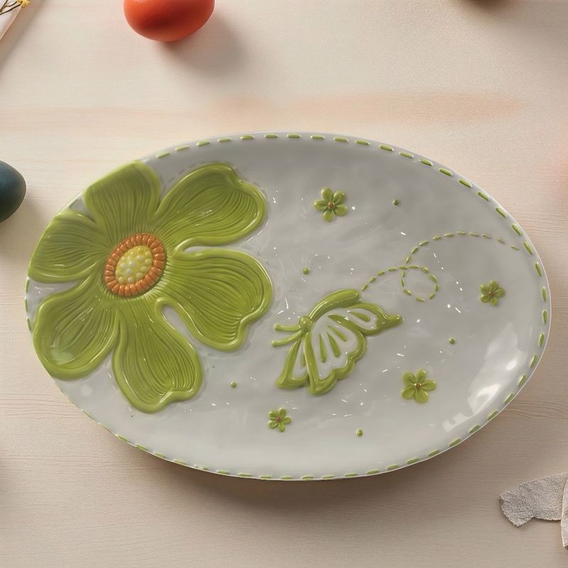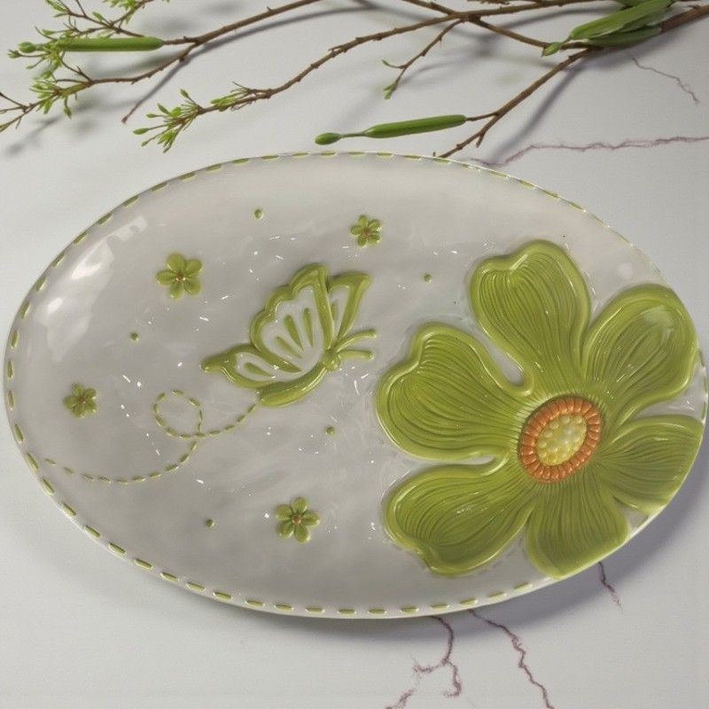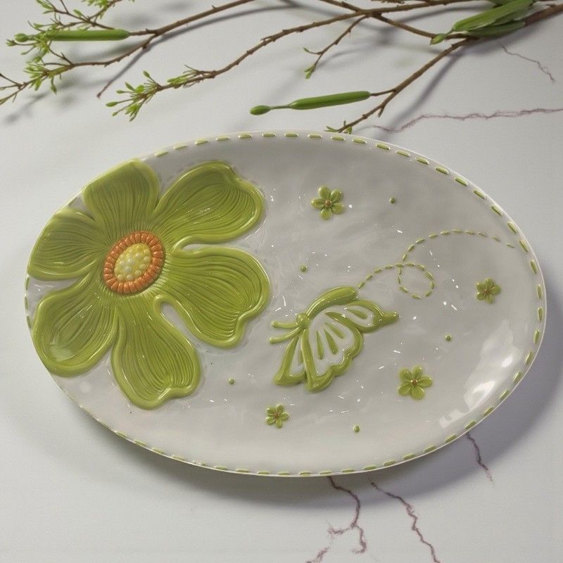 В серията ЦВЕТЕ И ПЕПЕРУДА ще откриете артикули, които може да използвате в ежедневието си. Дизайнът им е свеж и носи пролетна пъстрота. Това плато е практично и удобно за използване на трапезата. Също така може да бъде и чудесен декор за кухнята или на масата в трапезарията. Цялата серия е с винтидж излъчване, което може да се впише в интериора на дома.