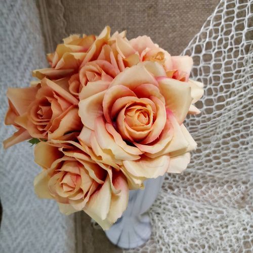 Букетче, което очарова с визия и цвят. Видът на розите им своята реалистичност позволява да бъдат използвани във вази, аранжировки и на места, където няма светлина. Това нежно букетче носи повея на уханието, което завладява хората от дълбока древност. В серията ЛИСТЕНЦА НЕЖНОСТ на сайта ни ще откриете и други цветова от този букет.