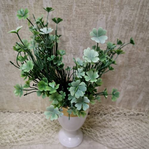 Красив букет от малки четирилистни детелинки, с който може да поканите късмета у дома или да пожелаете късмет на любим човек. Малкият стрък е с реалистична визия и може да го изпозвате за различни аранжировки или направата на предмети за декорация. На сайта може да намерите букетчето в различни цветови нюанси / изпишете в търсачката "детелинки"/.