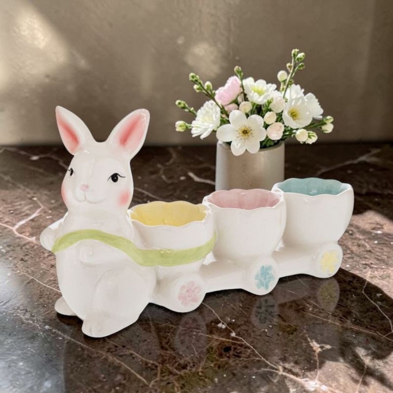 Серията ВЕЛЕКДЕНСКИ ВЕНЕЦ се състои от плата и поставки за яйца с венец от цветя в нежни тонове.Красиви и елегантни ,тези великденски артикули ще направят трапезата красива и запомняща се, а празника още по-цветен.Може да комбинирате различните артикули и да създадете композиция по ваш избор.