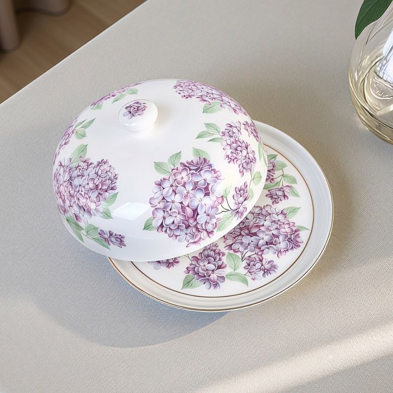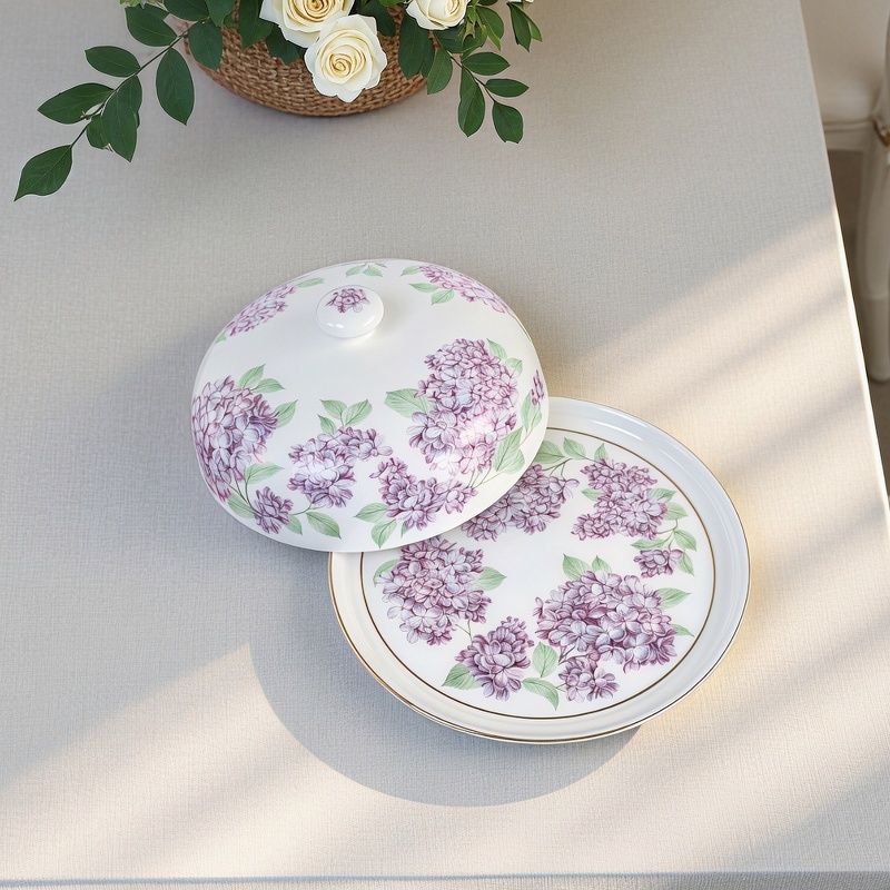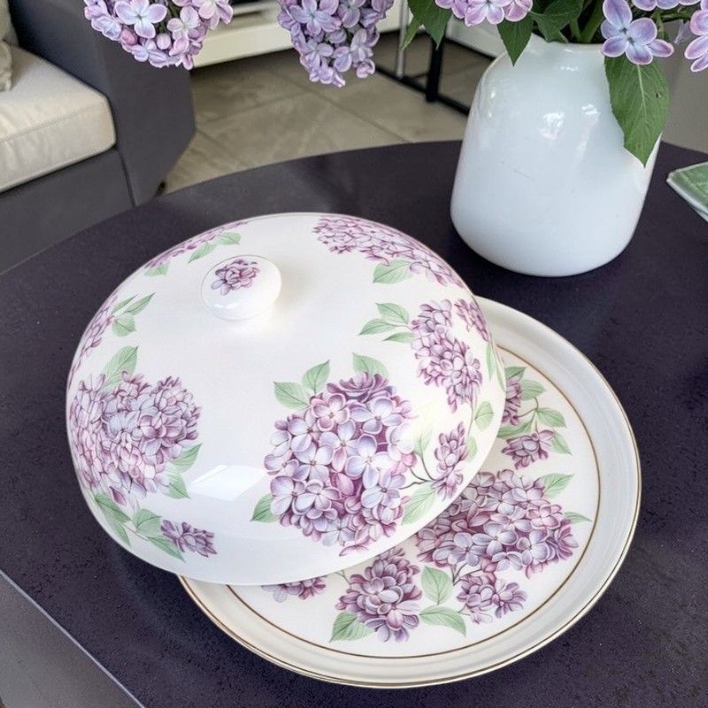 Има цветя, които опианяват, събуждат спомени и рисуват картини във въображението на всеки, който веднъж е усетил силата на техния аромат. Цветовете на люляка, независимо от цвета им имат ухание, което се помни, а кичестите венчелистчета, са като ято съцветия от нежност. Серията ЛЮЛЯКОВИ НОЩИ е съхранила синьо-лилавото в онзи отенък на нощта, която прегръща майчински. Всички артикули са подбрани по начин, който говори за изисканост и стил, които съхраняват ритуали при поднасянето на храна и напитки. Комбинацията от чаши, чинии и посуда може да завърши подредбата на трапезата, така че само и единствено да предизвиква възхищение при вида й. Това плато е доказателство, че дори и когато храната свърши присъствието му на масата няма да пречи. Капакът е предназначен да запази качеството на храната по-дълго време. Всеки артикул са предлага в цветна опаковка с дизайн на красиви люлякови клонки, като визията на самото изделие.