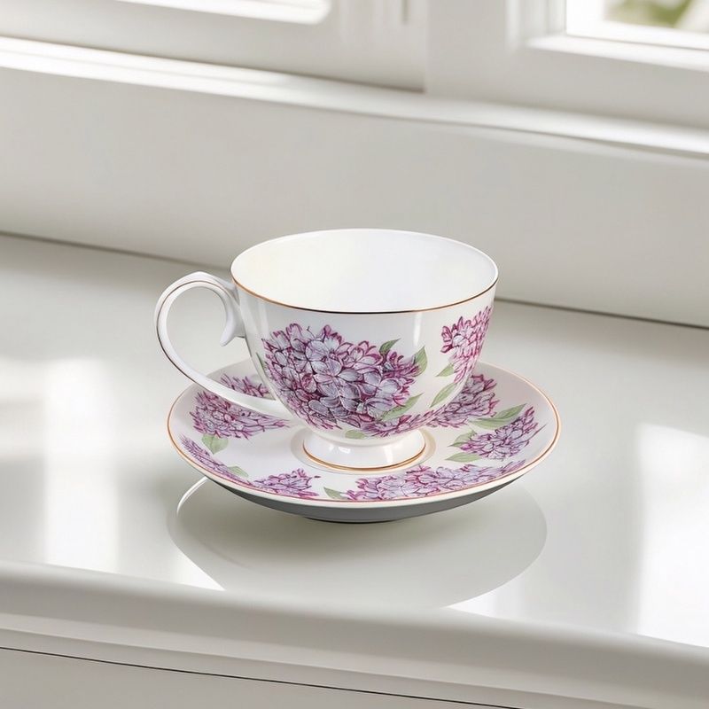 Има цветя, които опианяват, събуждат спомени и рисуват картини във въображението на всеки, който веднъж е усетил силата на техния аромат. Цветовете на люляка, независимо от цвета им имат ухание, което се помни, а кичестите венчелистчета, са като ято съцветия от нежност. Серията ЛЮЛЯКОВИ НОЩИ е съхранила синьо-лилавото в онзи отенък на нощта, която прегръща майчински. Всички артикули са подбрани по начин, който говори за изисканост и стил, които съхраняват ритуали при поднасянето на храна и напитки. Комбинацията от чаши, чинии и посуда може да завърши подредбата на трапезата, така че само и единствено да предизвиква възхищение при вида й. Всеки артикул са предлага в цветна опаковка с дизайн на красиви люлякови клонки, като визията на самото изделие. Комплектът привлича с форма и визия, а употребата в ежедневието е истинско удоволствие, заради формата и дизайна. Големината е подходяща за кафе, чай, дълго кафе, кафе с мляко или други напитки по избор. Комплектът съдържа 2 чаши и 2 чинийки , опаковани в луксозна подаръчна кутия. Във всяка кутия има по една чаша и чинийка. Комплектът е в две еднакви кутии.