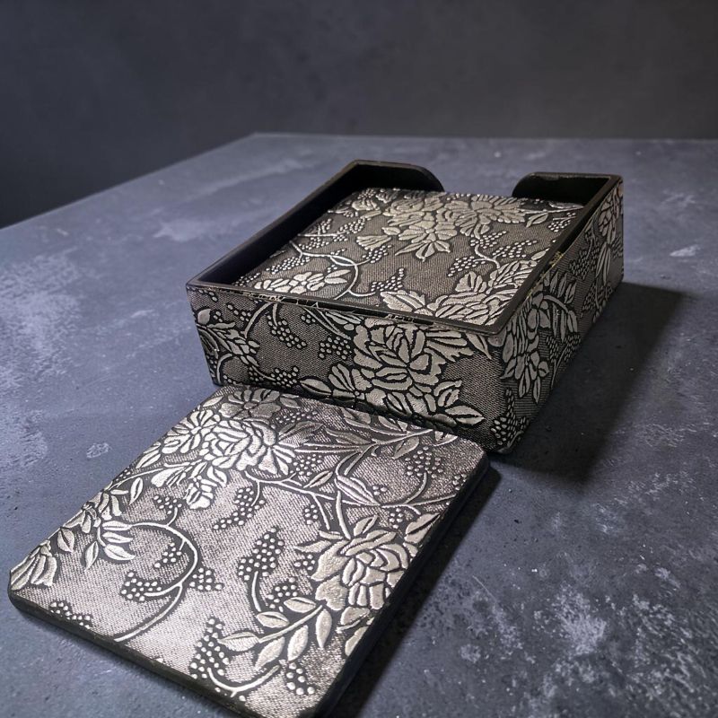 ПОДЛОЖКИ ЗА ЧАШИ КОМПЛЕКТ ОТ 6 броя КВАДРАТНИ - СРЕБЪРНИ ОТЛЯСЪЦИ