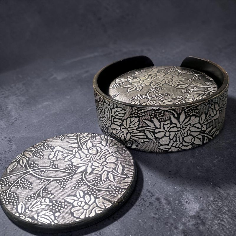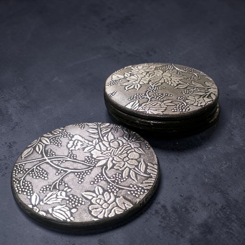 ПОДЛОЖКИ ЗА ЧАШИ КОМПЛЕКТ ОТ 6 броя КРЪГЛИ - СРЕБЪРНИ ОТЛЯСЪЦИ