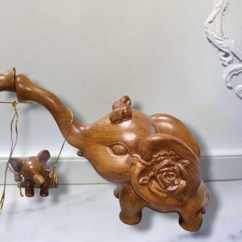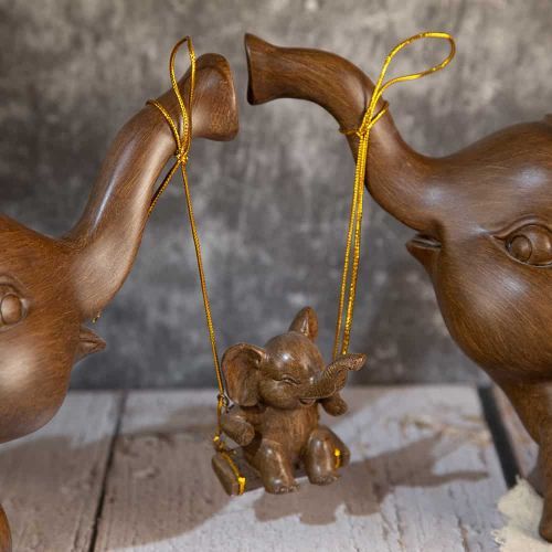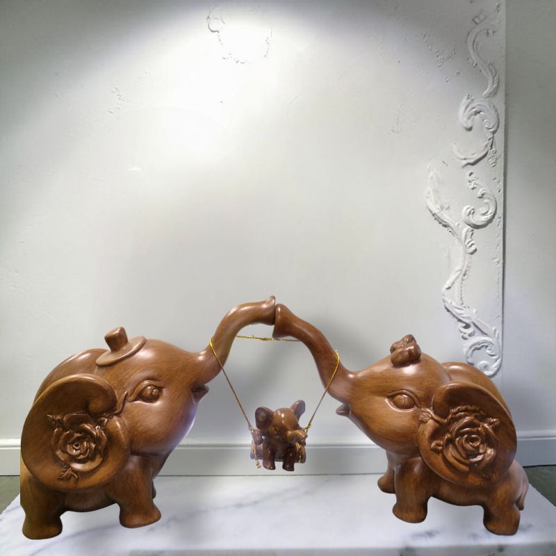 Размер на едното голямо слонче - 20см*12см*10см. Размер на малкото слонче-7см*5см*4см.