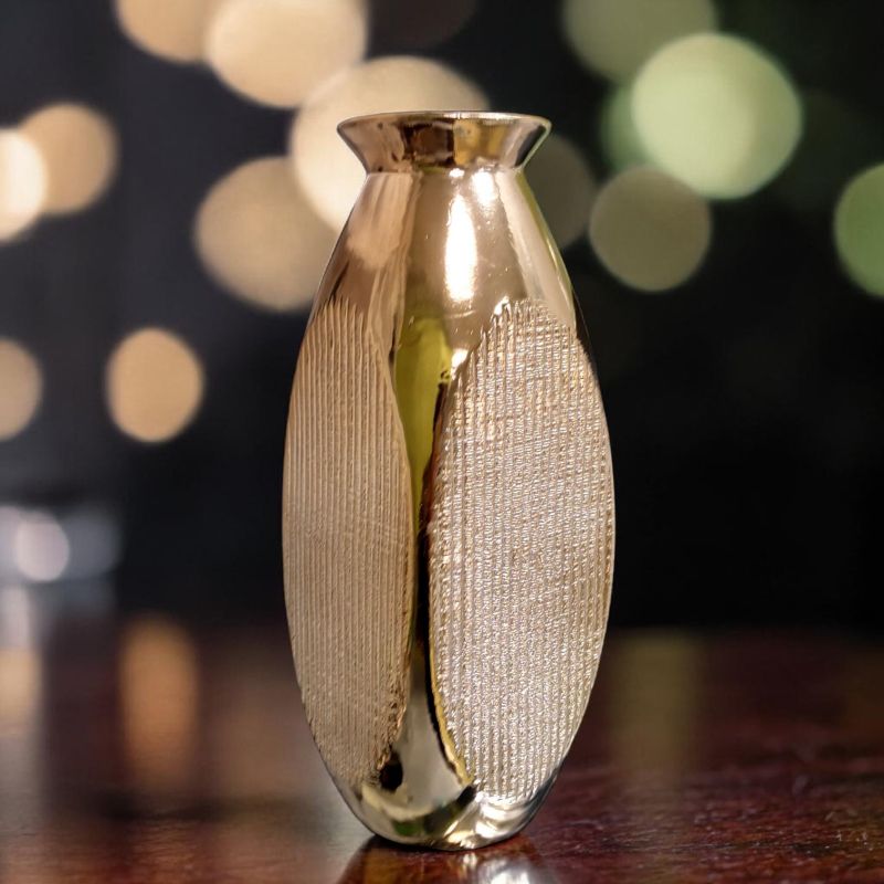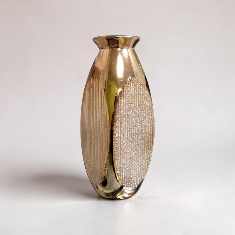 Серията от вази, плато и свещник СИЯНИЕ ОТ СЛЪНЧЕВО УТРО носи със себе си очарованието от топлите слънчеви прегръдки и съхранява онзи отенък на слънчевите лъчи, който не е точно жълт, а прелива и преминава през спектъра на дъгата, за да се превърне в нежно златен , запечатал сиянието и топлината. Със различните артикули може да се създадат ансамбли, като различна големина на вазите и да се подчертае красотата на серията. Изберете от различните комбинации и създайте тази, която ви очарова най-много. Вазата е подходяща, както за живи, така и за изкуствени цветя.При поръчка на два артикула от серията , ща получите свещ във формата на цвете, като подарък от нас.