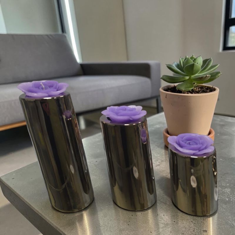 КОМПЛЕКТ ОТ 3 броя СВЕЩНИКА - ПЛАТИНЕНИ НЮАНСИ