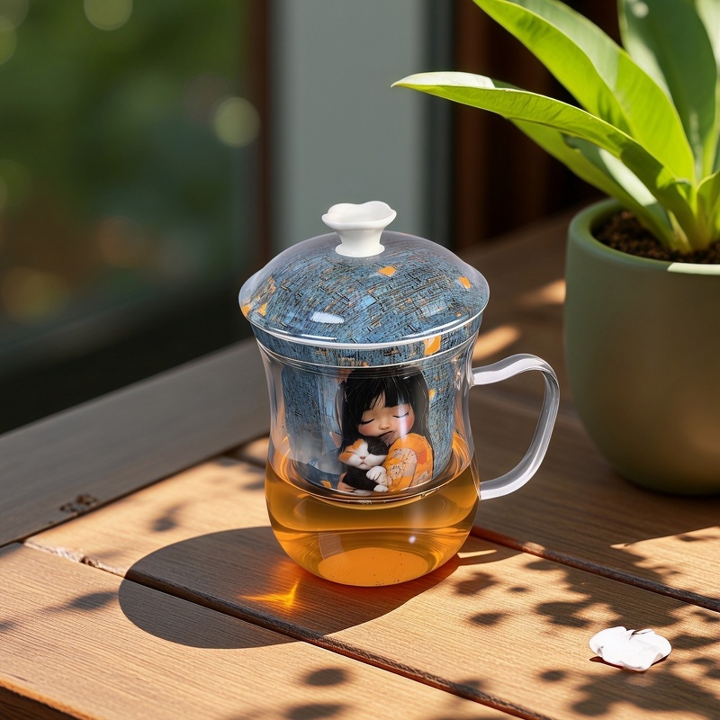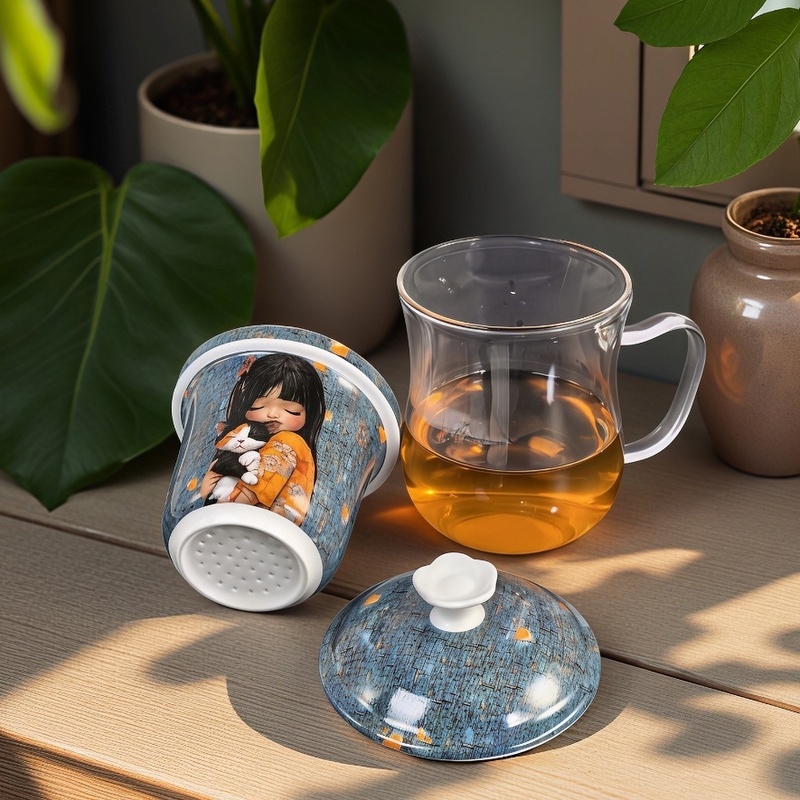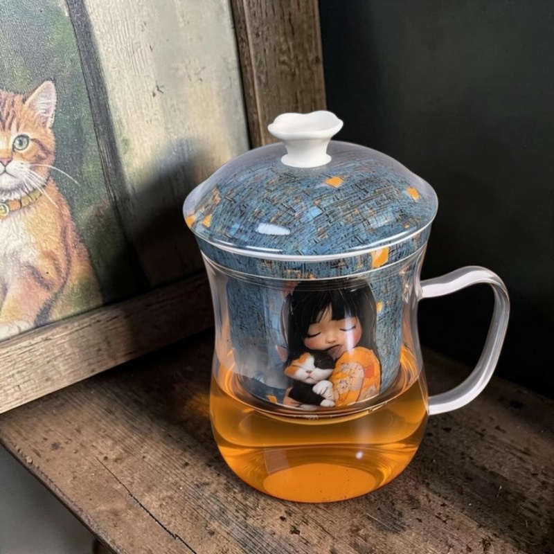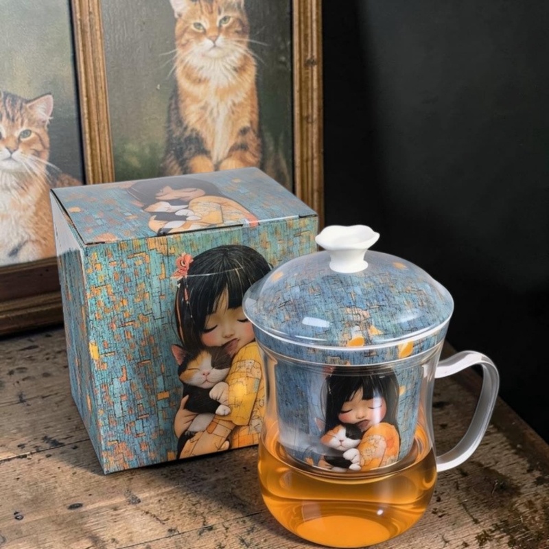 ЧАША ОТ БОРОСИЛИКАТНО СТЪКЛО ЗА ЧАЙ - ЧЕЛО КОТЕ КНИЖКИ