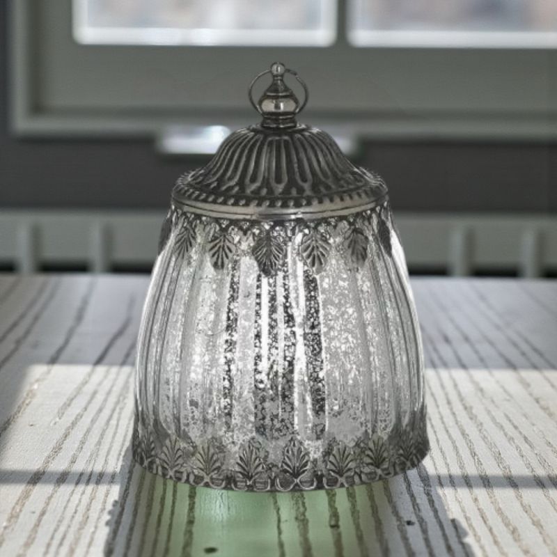 Стъклен лед фенер с трапецовидна форма в сребристо.